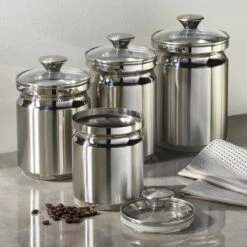 Tramontina”s Gourmet 4 Pc Covered Canister Set is a stylish and elegant storage option that looks great on the counter, and keeps your daily staples within reach. Tight-fitting, see-through lids help to keep your food fresh, and let you know, at a glance, what you have stored inside without lifting the lid. Since they”re made of durable, easy-to-clean, premium 18/10 stainless steel, they won”t impart flavor onto your food. This set of canisters is part of the Gourmet collection, which features timeless products crafted especially for the cooking enthusiast. Set includes: 1.25 Qt canister; 1.75 Qt canister; 2 Qt canister, and 3 Qt canister.