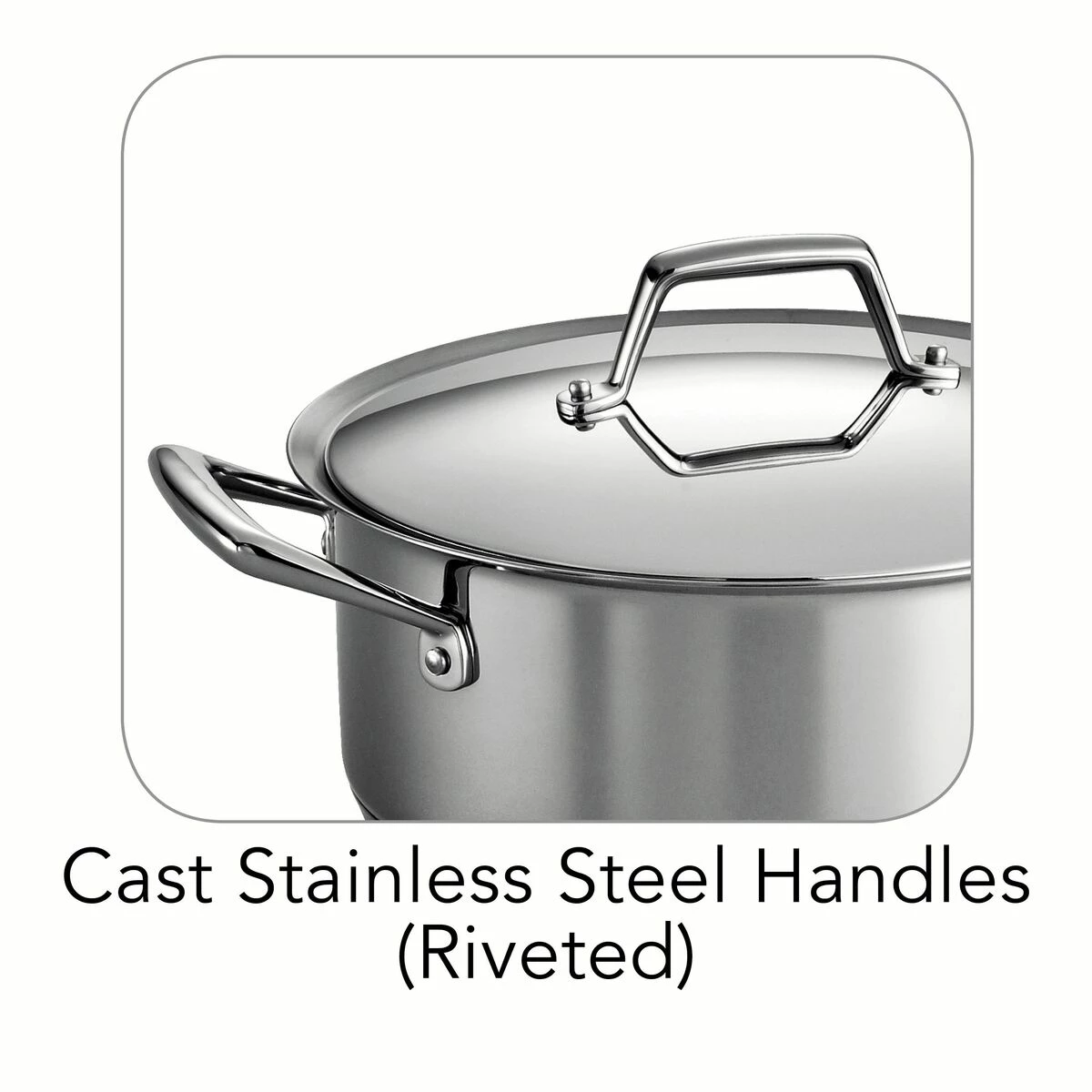 – Riveted, cast stainless steel handles