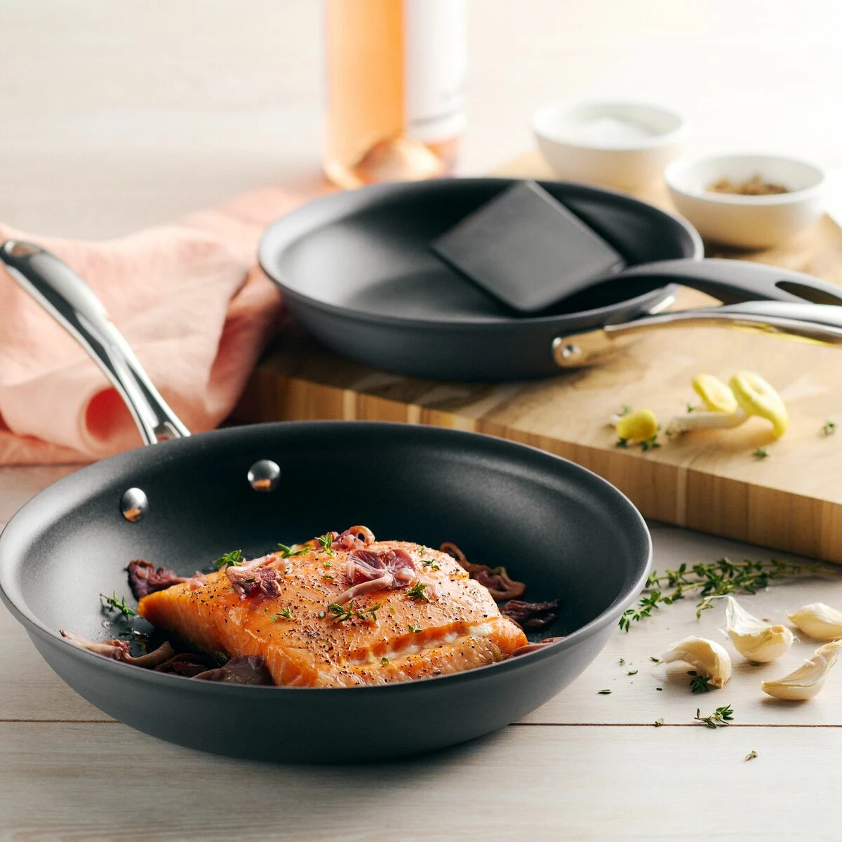 – Heavy-gauge, hard-anodized aluminum construction means uniform cookware that heats and cooks evenly